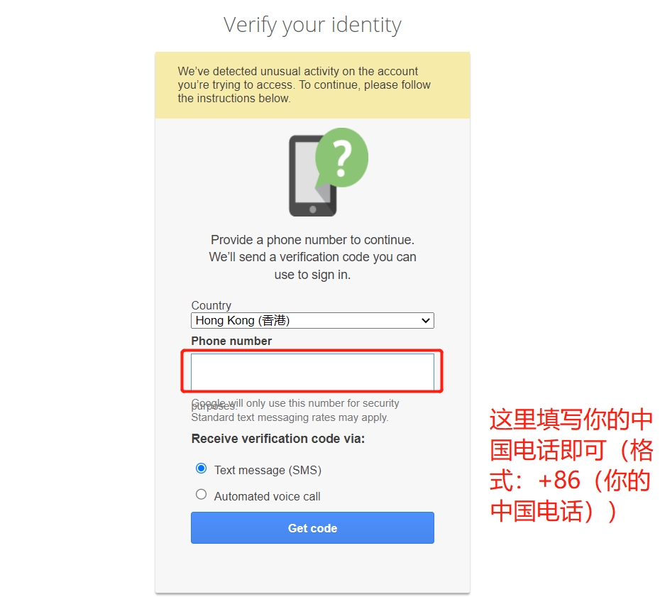 直接在电话号码那里输入你自己的手机号码【+86(你自己的手机号)(若该账号无法验证,再更换手机号)接收个验证码进行验证就可以登录了,对你自己的个人隐私、手机号没有任何影响,这是由于谷歌升级造成的。